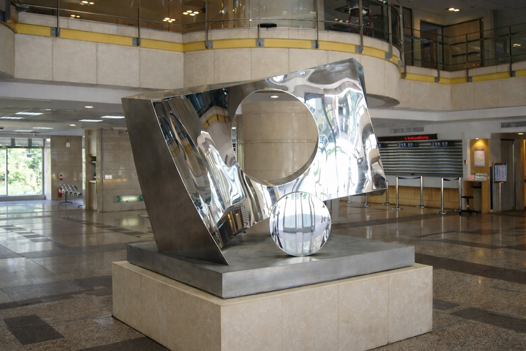 設置於立夫大樓大廳之公共藝術(1999);以鏡面金屬與幾何構成回應大廳尺度與光線流動,形成入口層級的視覺核心。