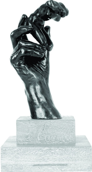 在羅丹創作的最後二十年,非常著迷「手」的創作。《沉思者》、《大教堂》、《皮埃爾•維桑》為最明顯例子。甚至在羅丹過世前不久,允許翻鑄自己的右手。由阿曼德•貝諾(Amadee Berhault)執行,羅丹經常將他的手與許多小軀幹結合。 《羅丹的手握著一女性軀幹》的形式輕鬆且簡單,手撐起微小的身軀,簡單傳遞「這是我做的,就在這裡,將它拿過去吧」(this is what I have made – here, take it in your hands.)。具有「創造者」之意,如同西斯廷教堂天花板上創造亞當的上帝之手,這隻手揉捏出世間偉大創作的藝術家之手。更簡單的表達了藝術家對女性軀體的愛戀,是羅丹告別之作。 這件銅雕作品,是以羅丹創作的石膏作品為原模,於1998年再翻鑄限量雕塑。每一件作品都屬名《RODIN》。 尺寸Dimension: 24.5x15x12cm 材質Material: 銅Bronze 構思與鑄造年代Conceived and Cast: 1917