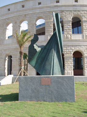 A civic-scale placement. The work’s landmark posture reads in dialogue with the façade, becoming a persistent point of urban recall.