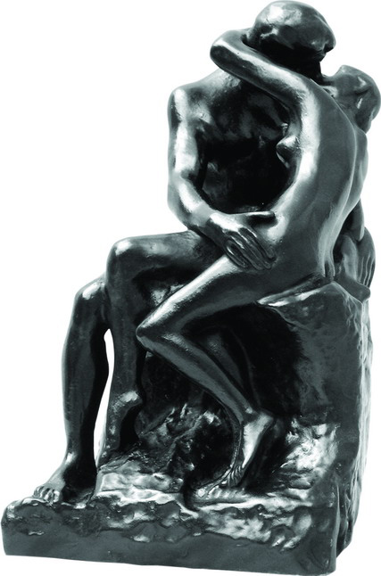 靈感來自於羅丹對卡蜜兒的激情,《吻》是羅丹最著名且重要的作品之一。起初它因《地獄門》而生,日後成為羅丹反覆創作的題材,共有六種不同尺寸。1886年,羅丹創作吻的大理石作品,隨後他又做了高190公分的巨形紀念碑式雕塑。 《吻》的靈感源自但丁《神曲》中愛情悲劇的男女主角:保羅和法蘭西斯卡(Paolo and Francesca)。於1887年首展時,不但不得好評,還被攻擊為色情之作,更被嘲笑為「飽受批評之吻」,其中一個原因應該是:《吻》是當時最大膽的作品。展出後才發現觀眾反應熱烈,大受歡迎,於是,法國政府要求羅丹將之製成大理石雕像,於1889年法國萬國博覽會上再次展出。 羅丹的《吻》深刻表達男女情愛間令人悸動心蕩的激情。男女相擁的緊密姿勢,嚴密而無間隙的成為不可分割的一體,心心相印中,似乎除了急促的呼吸之外,一切的時空運轉都已靜止下來,而且與外面世界相隔絕。羅丹為此大膽之作辯護說:「裸體同淫猥或放蕩無關,它表現的是真實。」這擁抱滿含激情而又無比純潔。《吻》和《永恆的春天》都是羅丹以形體動作來表現崇高的愛情和肉體的慾望、歡悅的衝動與無法抑制的痛苦。羅丹喜歡用人體來表現思想與感官之美,由此進入對個性的探索,好像全部美的祕密都在人的裸體上。藉由人體的語言,羅丹想傳達他的生命、熱情、直接、不顧一切,他坦率的雕塑出激情、痛苦、愛慾,也雕塑了平凡的塵世和超越的悲劇,最後直指向人性潛意識的悸動。 羅丹為《吻》做了一個註腳說:「人會認為這是以吻和愛撫塑造出來的!」。這件雕塑把雙人座像的下半部納入大理石中,避免了腳的繁瑣而加強了座像的整體感。以極為古典的寫實手法雕刻而成,他們細膩、優雅的肌體和姿態,引起了極為生動的光影效果。 居斯塔夫.吉弗魯瓦(Gustave Geffroy)曾說:「男人的手彎如弓,女人的手高抬,他們的唇緊密的連繫著兩著如誓約的親吻。透過一種非凡的藝術魔法,我們看見的並非只是戀人的臉孔,視覺貫穿脖子的頸背至腳跟,這個男人後背的每一細節都顯得相當純粹-骨頭、肌肉、神經,男人的小腿似乎緩慢纏繞依靠愛人的小腿,而那女人的腳,幾乎沒有著地,表現一股向上的優雅及熱情。」 這件銅雕作品,是以羅丹創作的石膏作品為原模,於1998年再翻鑄限量雕塑。每一件作品都屬名《RODIN》。 尺寸:87x51x55 cm 翻置25件銅雕:編號 1/25 至 25/25 鑄造章:Airaindor. 技法:脫蠟鑄造 RODIN IN TAICHUNG 羅丹雕塑展 地獄門VS.愛 2007.9.22-12.22 臺中市役所