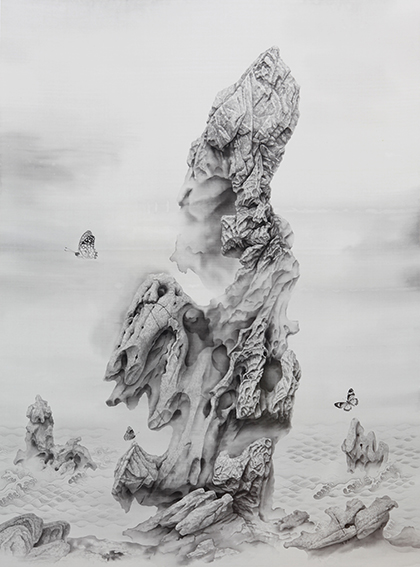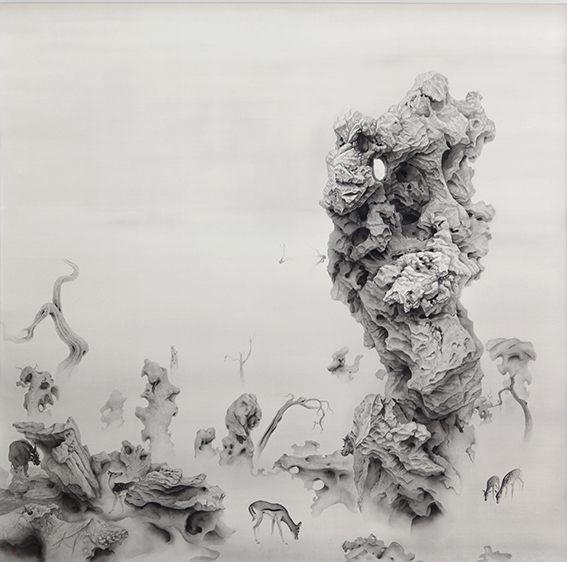 在精神內涵的層面,這些作品也許更為接近保羅·納什(Paul Nash 1889—1941)和恩斯特(Max Ernst 1891—1976)的藝術境界,其所展示的是一種在中國傳統繪畫中不曾有過的「啟示錄式的風景」(Apocalyptic landscape)。與西方畫家的作品不同,這裡沒有世界末日山崩地裂或戰爭過後滿目瘡痍的慘烈景象,反而流露出一種淒美、哀婉的詩意。然而,透過表面的差異,在揭示文明與野蠻的對峙,以及歷史過程的殘酷、荒謬方面,兩者顯然具備同樣震撼人心的力量。