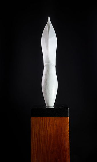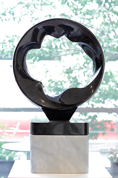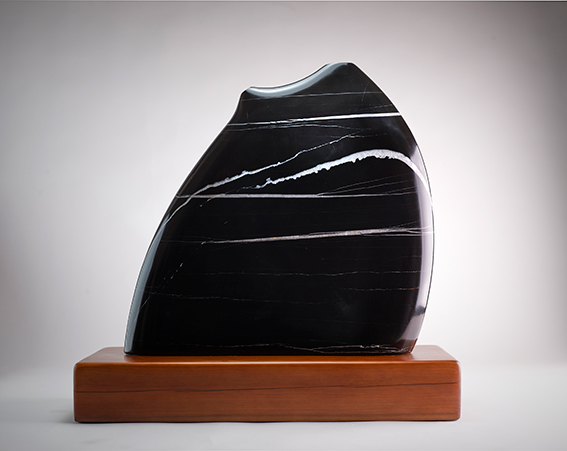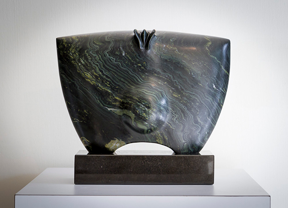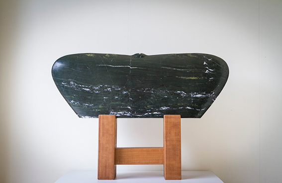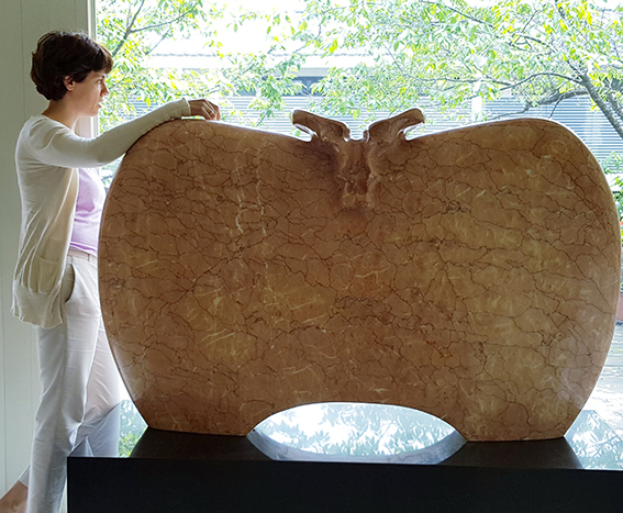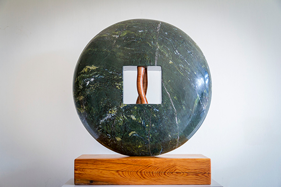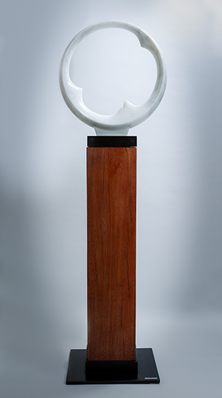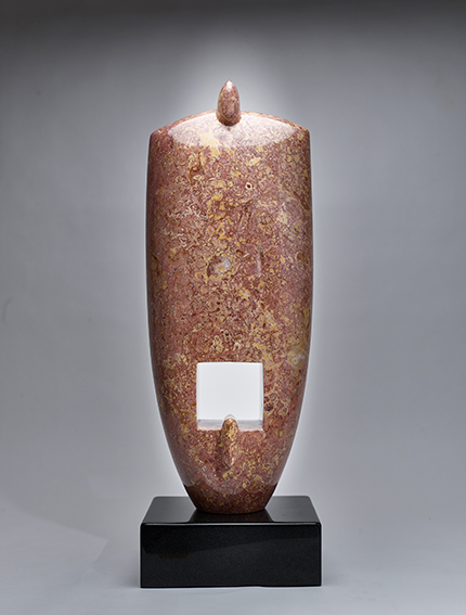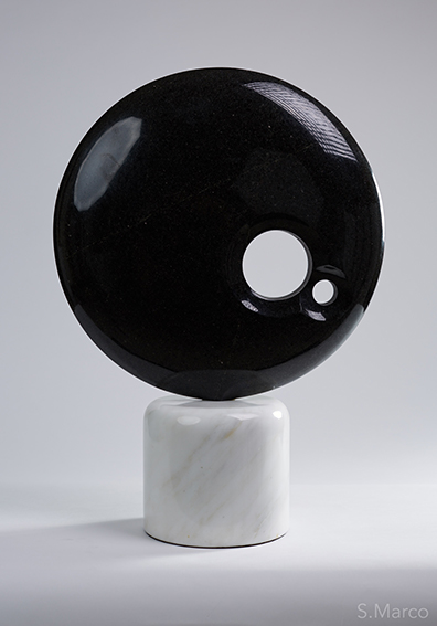 馬可的石雕並沒有一個具體再現的形象,而是以極簡的表現形式傳遞出純淨、協調、平靜之意,透過成熟內斂的技術,賦予作品有溫度的生命力。細察馬可的創作便可發現他既是個創作者更是位欣賞者,懷著崇敬的心情觀賞著每一個材料,並依隨該石材本身巧奪天工的細膩紋理,展開天人合一的對話並共融出馬可獨特的和諧、沉穩、宏偉與莊嚴,創作主題《孕》、《天圓‧地方》、《循環》、《山》等散發出簡約優雅的美感外,更流露出對大地母親無限包容的讚嘆!
