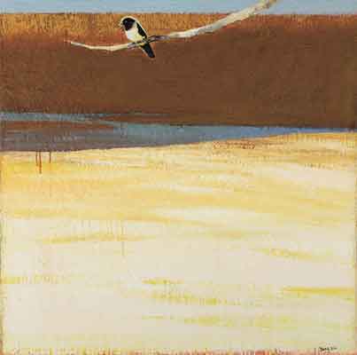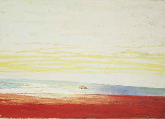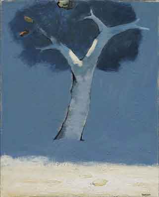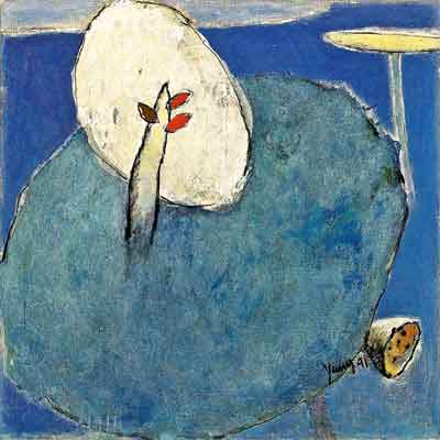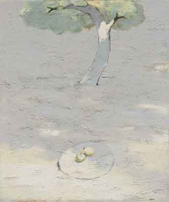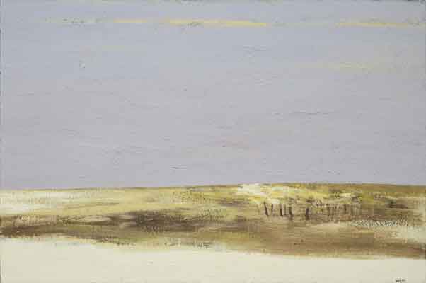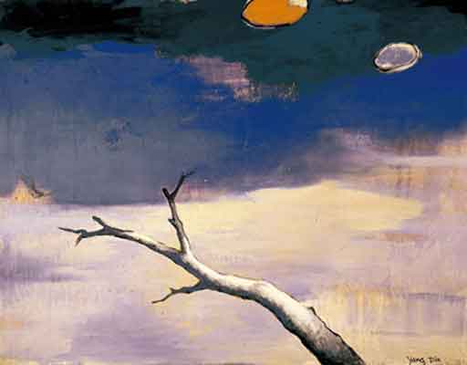 1958 年生於中國廣東,1980 年旅居巴黎,1987 年畢業於巴黎國立高等美術學院。定居歐洲之後,他以壓克力與畫布為主要媒材,長年以「旅行、時間與記憶」為母題,發展出介於寫實與抽象之間的抒情語彙。楊登雄擅以寬幅、全景式的構圖與如電影運鏡般的節奏,將極簡的樹、鳥、屋舍、地平線與月色,化為空靈而遼闊的視覺場域;柔和而層層堆疊的色面,保留筆觸與肌理的呼吸,傳遞東方哲思的留白與西方繪畫的色光感。